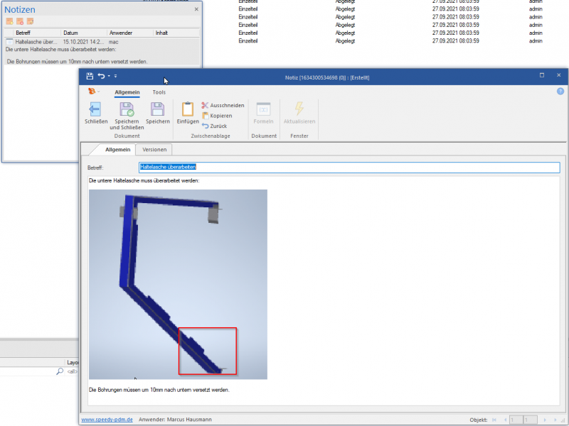 Pin“ is displayed in the document list if a document contains one or more notes: