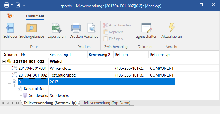 Sie befinden sich hier: Produkt Daten Management ** made in germany ** made with experience ** made with passion ** » Product Data Management ** made in germany ** made with experience ** » speedy » Explorer » Documents : teileverwendung_1.png