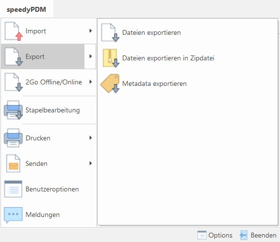 Sie befinden sich hier: Produkt Daten Management ** made in germany ** made with experience ** made with passion ** » speedy » Explorer » Dokumente : export.png