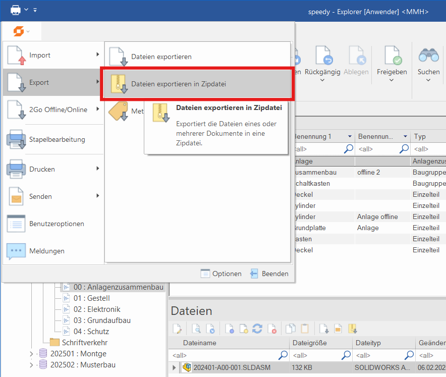 Sie befinden sich hier: Produkt Daten Management ** made in germany ** made with experience ** made with passion ** » speedy » FAQ » Support : dateien_exportieren_zipdatei.png