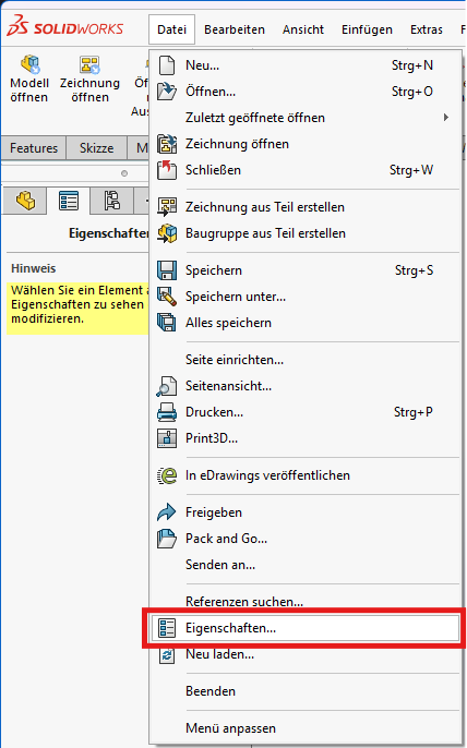 - Sie erstellen eine neue Datei mit dem Solidworks-Befehl Datei » Neu.
