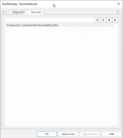 Der Stempel kann wie der Name schon sagt ein Aufdruck in Form eines Stempels sein z.B. „Geheime Verschlusssache“ oder es können zusätzliche Informationen aus dem Dokument oder dem Projekt ebenfalls auf den Ausdruck aufgebracht werden. So können auch z.B. Seitennummern aufgedruckt werden. Beispielvorlagen finden sie unter: \\<server>\speedy_bin$\report.