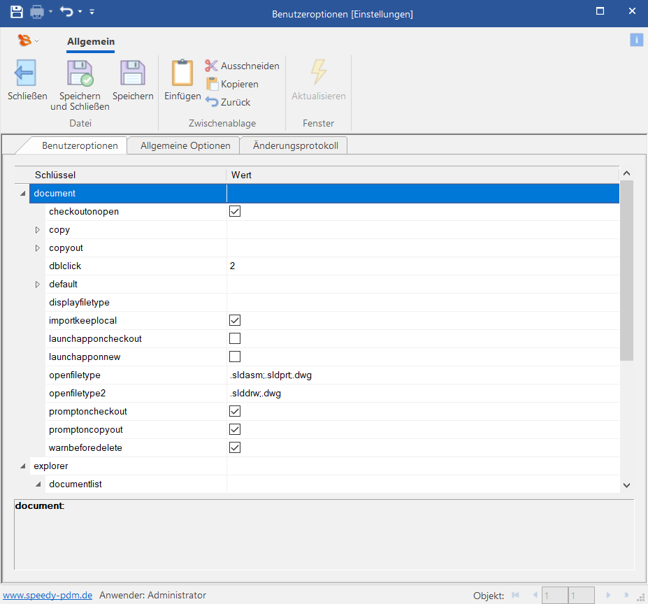 Sie befinden sich hier: Produkt Daten Management ** made in germany ** made with experience ** made with passion ** » Product Data Management ** made in germany ** made with experience ** » speedy » Explorer » Introduction : benutzeroptionen.png
