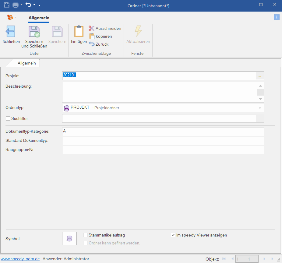Sie befinden sich hier: Produkt Daten Management ** made in germany ** made with experience ** » Product Data Management ** made in germany ** made with experience ** » speedy » Explorer » Structure : projektordner_erstellen.png