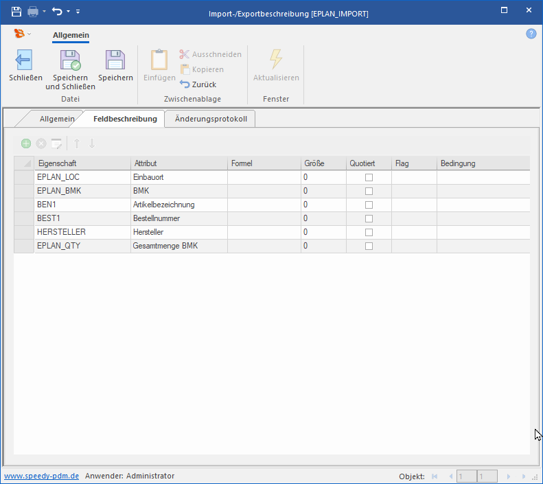 Sie befinden sich hier: Produkt Daten Management ** made in germany ** made with experience ** » speedy » Module » EPLAN / Mechatronische Stückliste : eplan_import.png