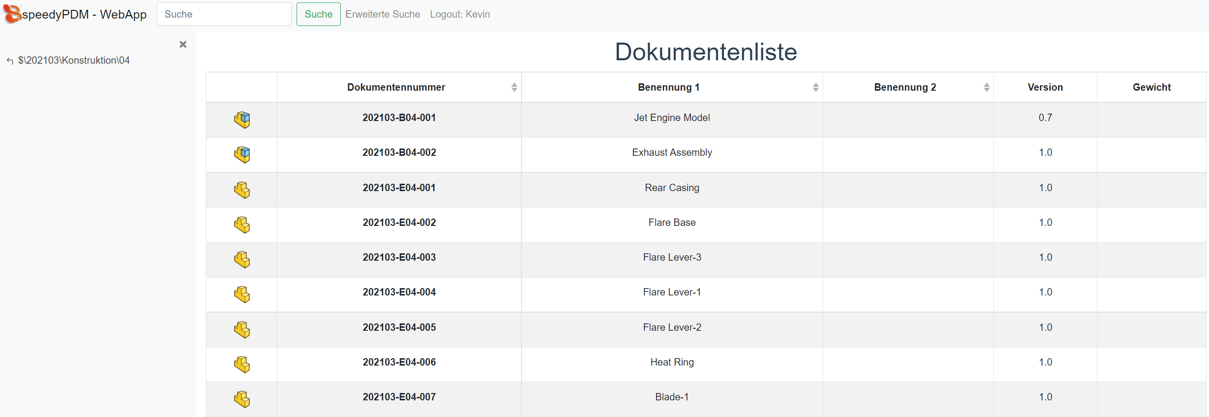 Sie befinden sich hier: Produkt Daten Management ** made in germany ** made with experience ** made with passion ** » speedy » Module » speedyWEB : web_doclist.png