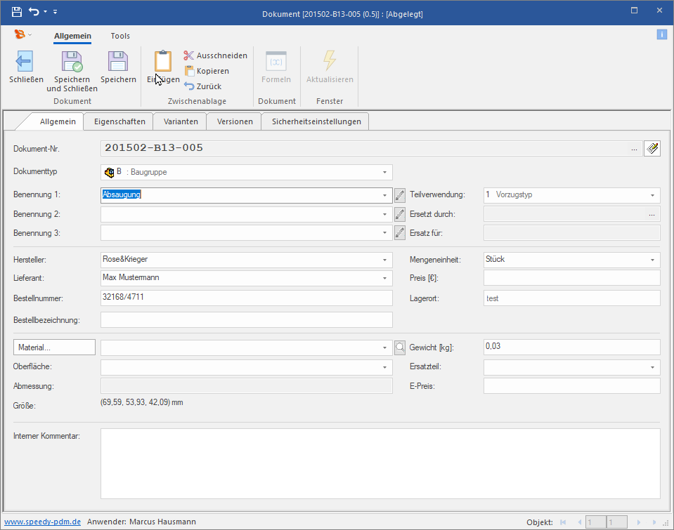 Sie befinden sich hier: Produkt Daten Management ** made in germany ** made with experience ** » speedy » Neue Funktionen » Neue Funktionen in speedyPDM 7.4 : dlgdocumentedit_ribbon.png