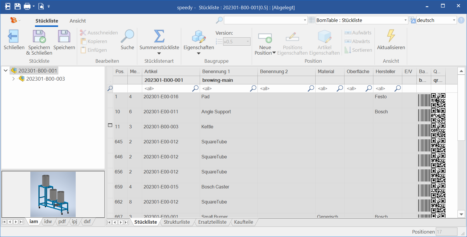 Sie befinden sich hier: Produkt Daten Management ** made in germany ** made with experience ** » speedy » Neue Funktionen » Neue Funktionen in speedyPDM 7.5 : bom_qr_barcode.png